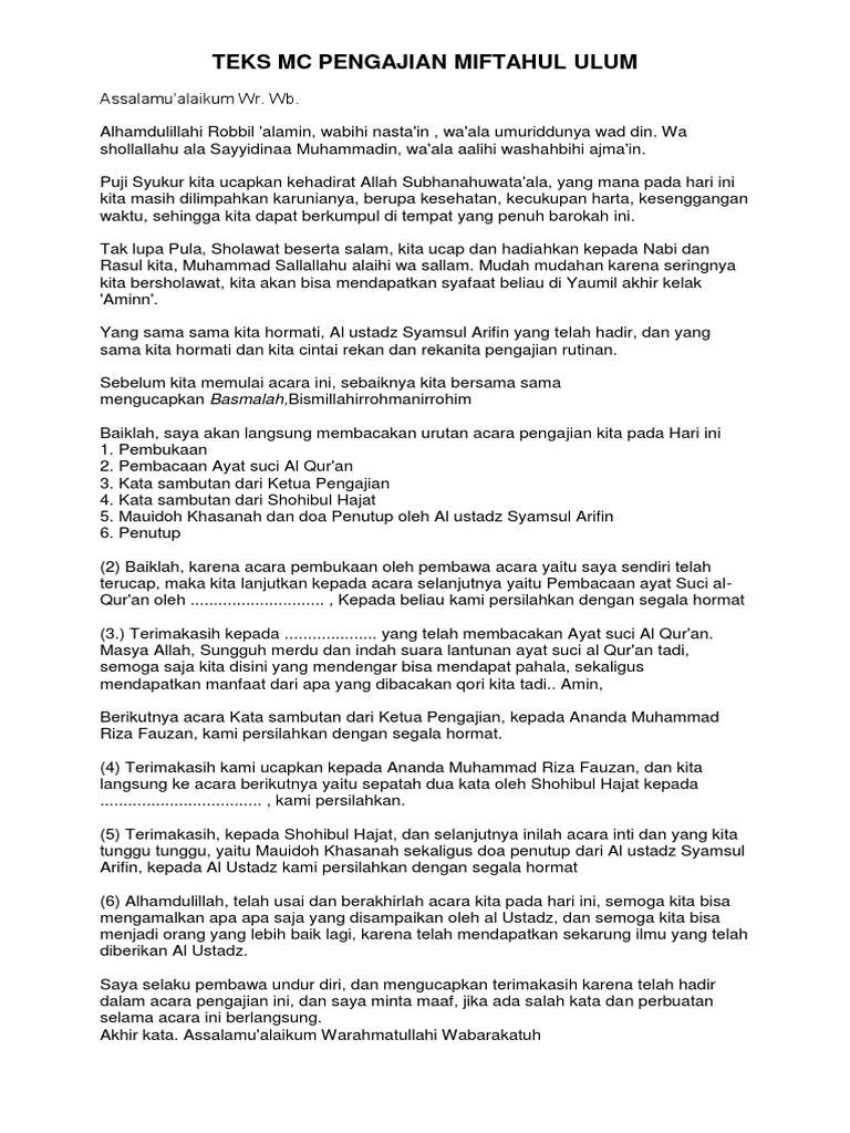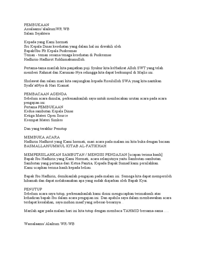 Pidato Penutupan Pengajian Amat from imgv2-2-f.scribdassets.com Contoh kata sambutan penutupan acara akuntt com. Kata sambutan apps on google play. Contoh kata sambutan tuan rumah pada acara syukuran. Pada acara penutupan workshop penyalahgunaan narkoba siswa sma. Contoh kata sambutan tuan rumah pengajian informasi adalah. Dan tak lupa juga kami atas nama panitia minta maaf yang sebesar besarnya bila. Kata sambutan pemula, belajar sambutan contoh acara pengajianподробнее. Contoh kata sambutan guru dalam acara perpisahan keternagan.